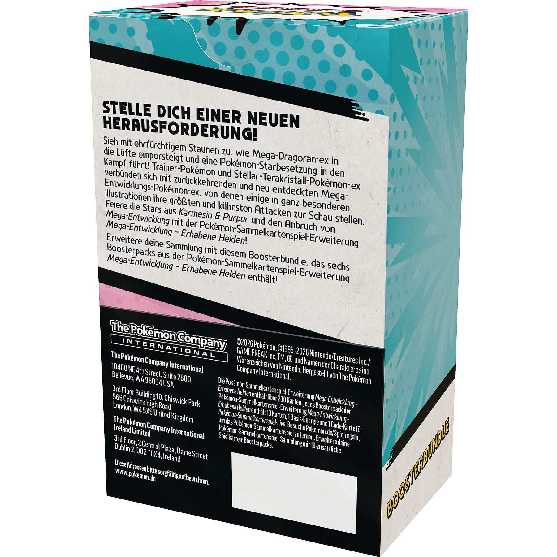 Mit 6 Boosterpacks ist das Boosterbundle aus Erhabene Helden ideal für alle Trainer, egal ob neu oder erfahren, die in die neue Erweiterung einsteigen möchten. Jeder Interessent darf max. 2 Boosterbundle vorbestellen bzw. erwerben.